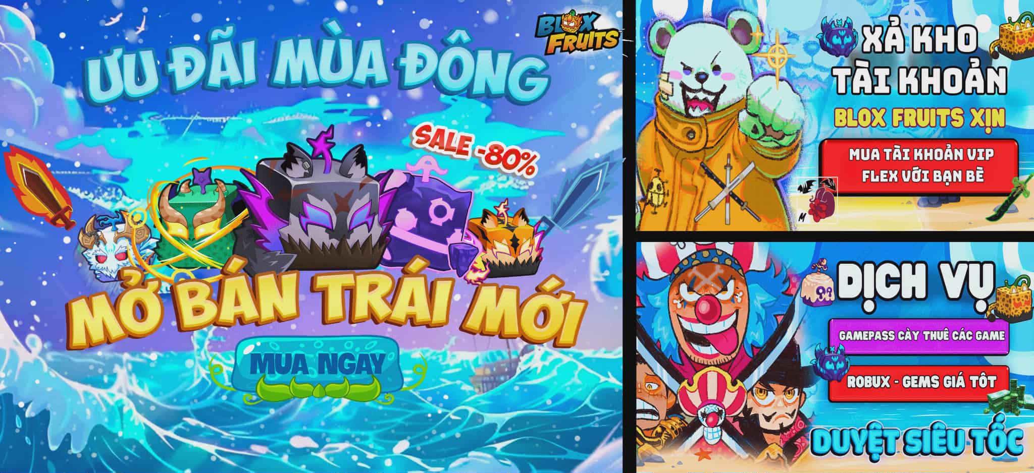 Ngoài ra, chúng tôi còn cung cấp dịch vụ mua Acc Roblox với nhiều lựa chọn tùy theo nhu cầu của bạn. Tất cả các tài khoản đều được kiểm tra và đảm bảo sạch sẽ trước khi bán cho bạn. Chúng tôi cam kết giữ cho bạn an toàn và tránh xa mọi rủi ro liên quan đến việc mua acc. Shop bán acc roblox của chúng tôi có đầy đủ các thẻ loại acc game roblox như: blox fruit, king lagacy, all star tower defen, anime fighter simulator, grand piece, ....